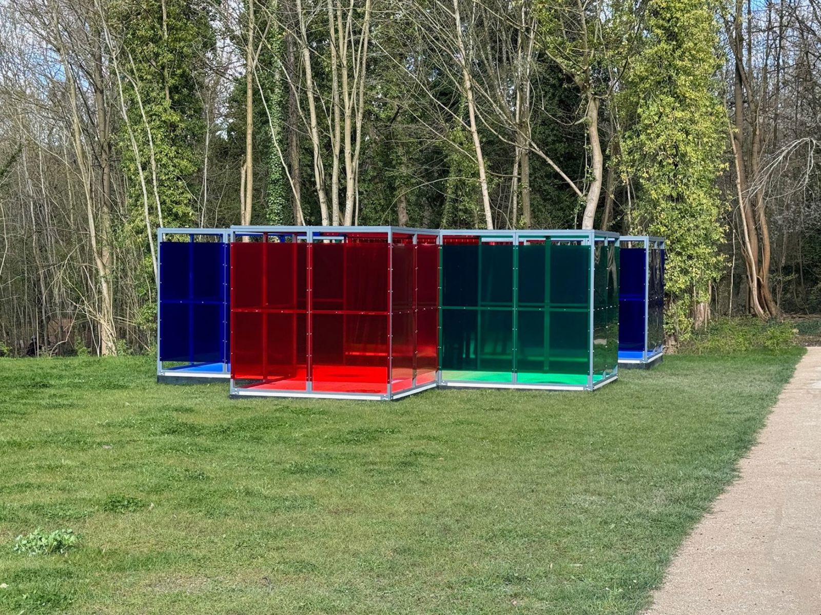 Presentada en 2012 en el marco del programa FIAC Hors les Murs, en el corazón del Jardin des Tuileries, Chromosaturation pour une allée publique (1965/2012) tiene la particularidad de estar compuesta por dos estructuras colocadas una frente a la otra. Un diálogo como el que encontramos en Chromosaturation et promenade chromatique pour un lieu public (París, 1969) presentado en la plaza del Odéon, bulevar Saint-Germain de París.