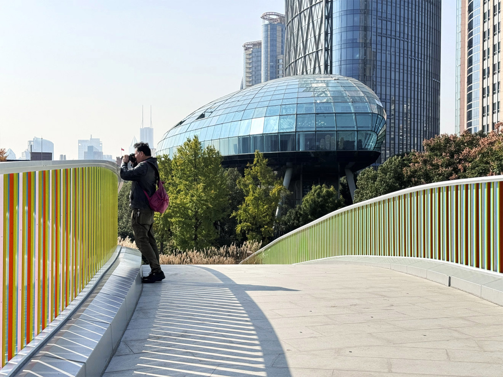 The Chromostructure will be integrated to the balustrade of the Rainbow Bridge, a distinctive landscape structure allowing visitors to enjoy the city skyline as they ascend step by step and revealing the interaction between colors and the spatial environment.