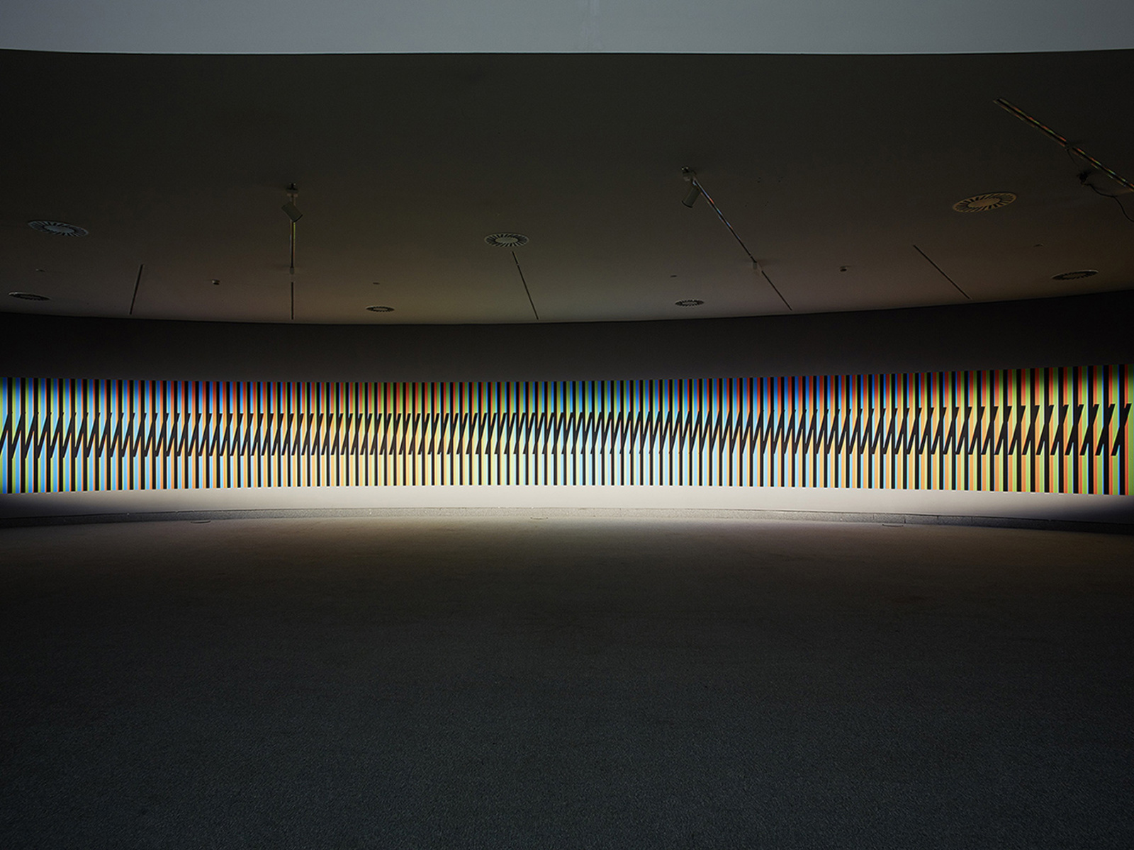 The monumental artwork Inducción Cromática A Doble Frecuencia (2014) - measuring 2x 20 meters! - will be displayed at the 24th floor of the building, bringing amazement and astonishment in a unique city landscape.